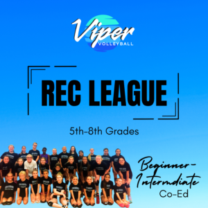 Our REC League has quickly become one of our most anticipated programs! Our current families, as well as new families, enjoy this developmental program with more games and practices. Rec League is designed to give our newer athletes the team experience and enjoy a game-like atmosphere. Taught by current Viper Club Coaches, all the athletes will get skill training and will be introduced to the 6 v 6 game of volleyball.